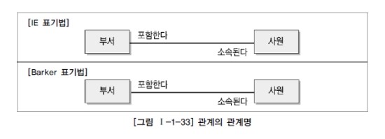 관계명은 엔터티가 관계에 참여하는 형태를 지칭한다. 각각의 관계는 두 개의 관계명을 가지고 있다. 또한 각각의 관계명에 의해 두 가지의 관점으로 표현될 수 있다.