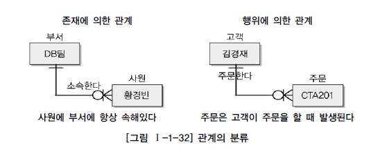 반면에 오른편에 있는 김경재 고객은 ‘주문한다’라는 행위를 하여 CTA201이라는 주문번호를 생성하였다. 주문 엔터티의 CTA201 주문번호는 김경재 고객이 ‘주문한다’라는 행위에 의해 발생되었기 때문에 두 엔터티 사이의 관계는 행위에 의한 관계가 되는 것이다.